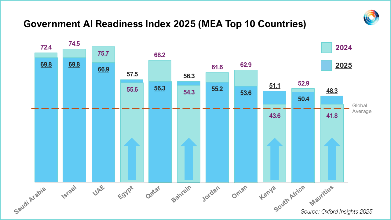 Egypt is one of only four countries in the Middle East and Africa top ten grouping that increased its overall score from the 2024 edition of the index, demonstrating sustained progress in AI readiness capabilities.