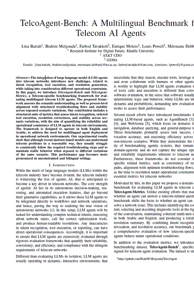 #UAE #telecom– Global telecom association GSMA, US telco AT&T and the Digital Future Institute of Abu Dhabi-based Khalifa University have released TelcoAgent-Bench, a specialised benchmark designed to test whether AI agents can reliably handle real telecom network troubleshooting. The framework evaluates AI across 15 troubleshooting intents, 49 scenario blueprints, and approximately 1,470 dialogues in both English and Arabic languages. Key findings show that while current AI models understand telecom problems reasonably well, they consistently struggle to follow correct diagnostic sequences, particularly across scenario variations and in bilingual settings.