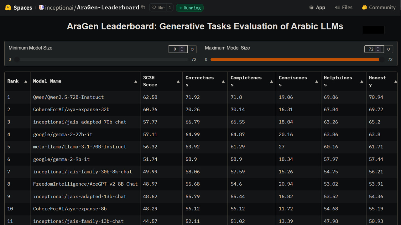 This leaderboard introduces generative tasks evaluation for Arabic LLMs powered by Inception’s new 3C3H evaluation framework, delivering a transparent, robust, and holistic evaluation system that balances factual accuracy and usability assessment for a production ready setting.