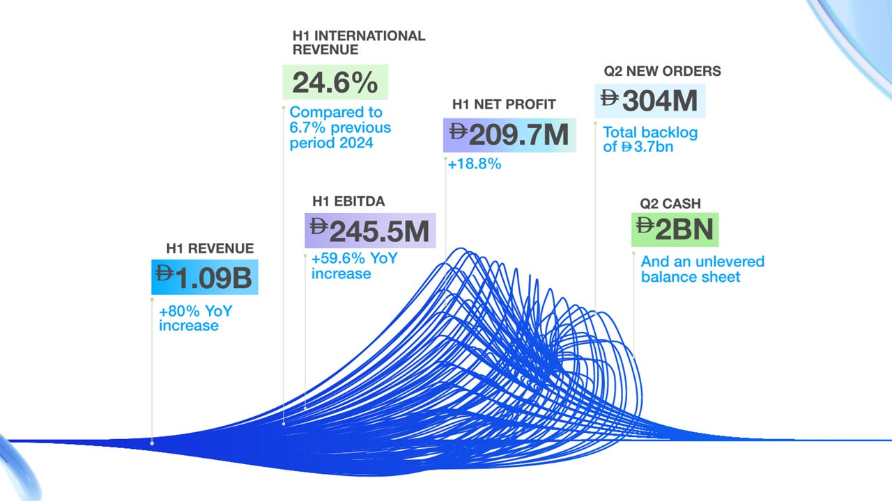 The AI company’s second quarter performance delivered AED 523.9 million ($142.64) revenue with 53.5% growth compared to Q2 2024, while international markets contributed 26.8% of quarterly revenue, significantly up from 4.9% in the previous year period.