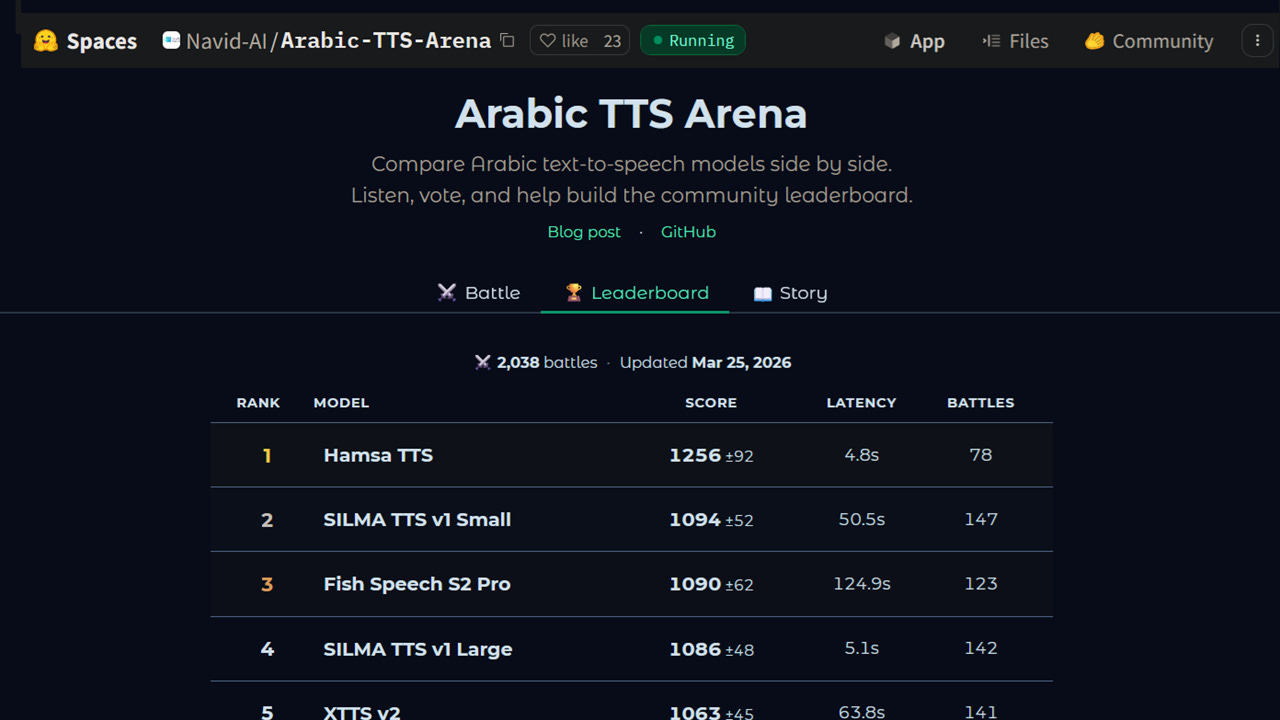 #SaudiArabia #TTS – Riyadh-based AI company Navid, the Generative AI arm of Watad, has launched the Arabic TTS Arena, an open, community-driven leaderboard for Arabic text-to-speech models. The platform lets Arabic speakers listen to two anonymous AI voice models reading the same text, vote for whichever sounds more natural, and collectively build a rankings table based on human preference rather than technical metrics. Currently hosting 15 models spanning open-source and commercial systems, the arena uses the Bradley-Terry rating model, the same mathematical framework that ranks chess grandmasters and powers the widely used LMArena large language model leaderboard. The model converts individual votes into ranked scores.