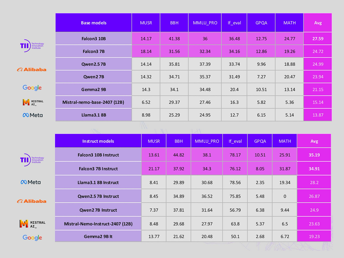 Falcon 3-10B now leads the Hugging Face leaderboard for models under 13 billion parameters, surpassing open-source competitors, including Meta’s Llama variants.