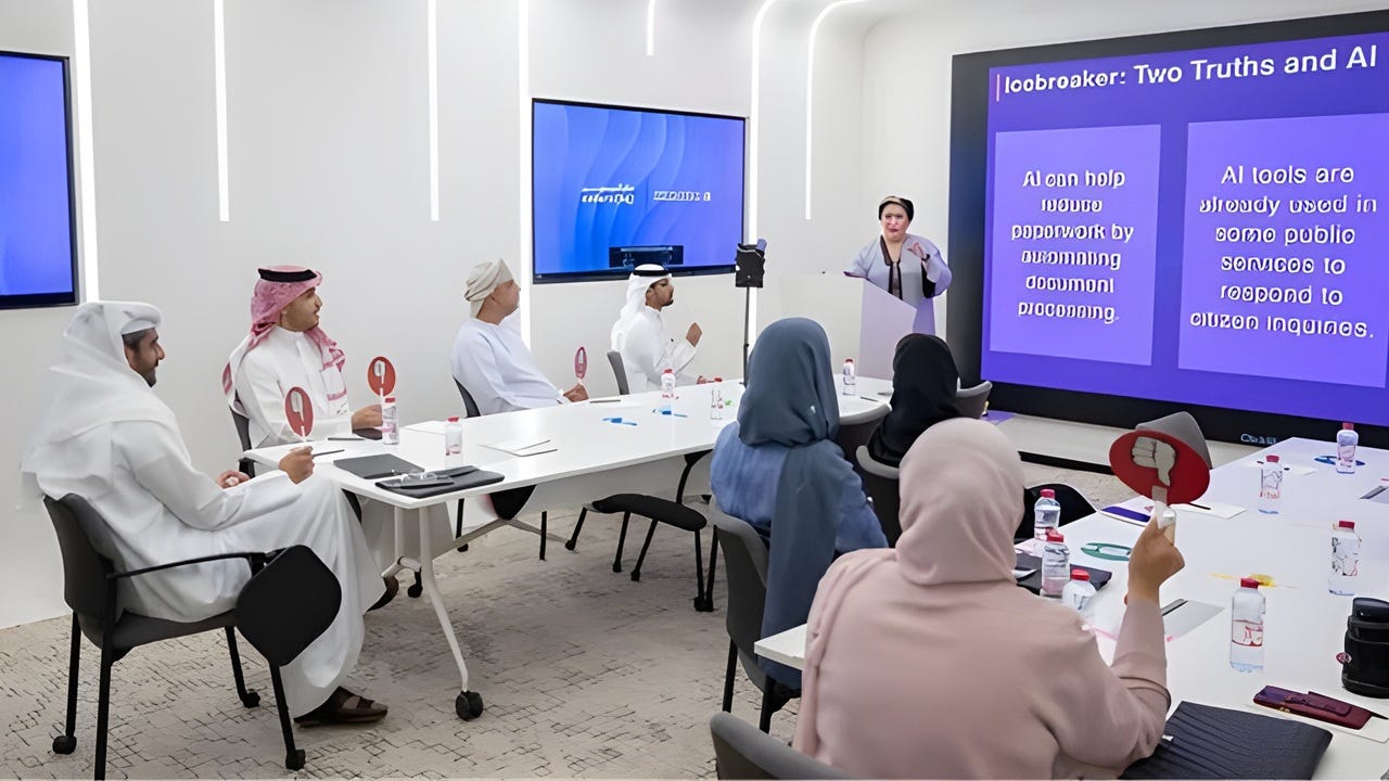 Workshop topics covered emerging areas including creative AI, government entity readiness for global advancements, AI agents, leadership in emerging technologies, environmental protection applications, and prompt engineering for productivity enhancement.