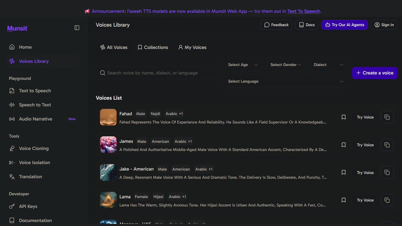 CNTXT AI has relaunched Munsit as a full Arabic voice AI platform, combining its patented speech recognition engine with the new Faseeh text-to-speech model. The system supports more than 25 Arabic dialects and is designed for deployment across government, finance, customer service, and digital platforms.